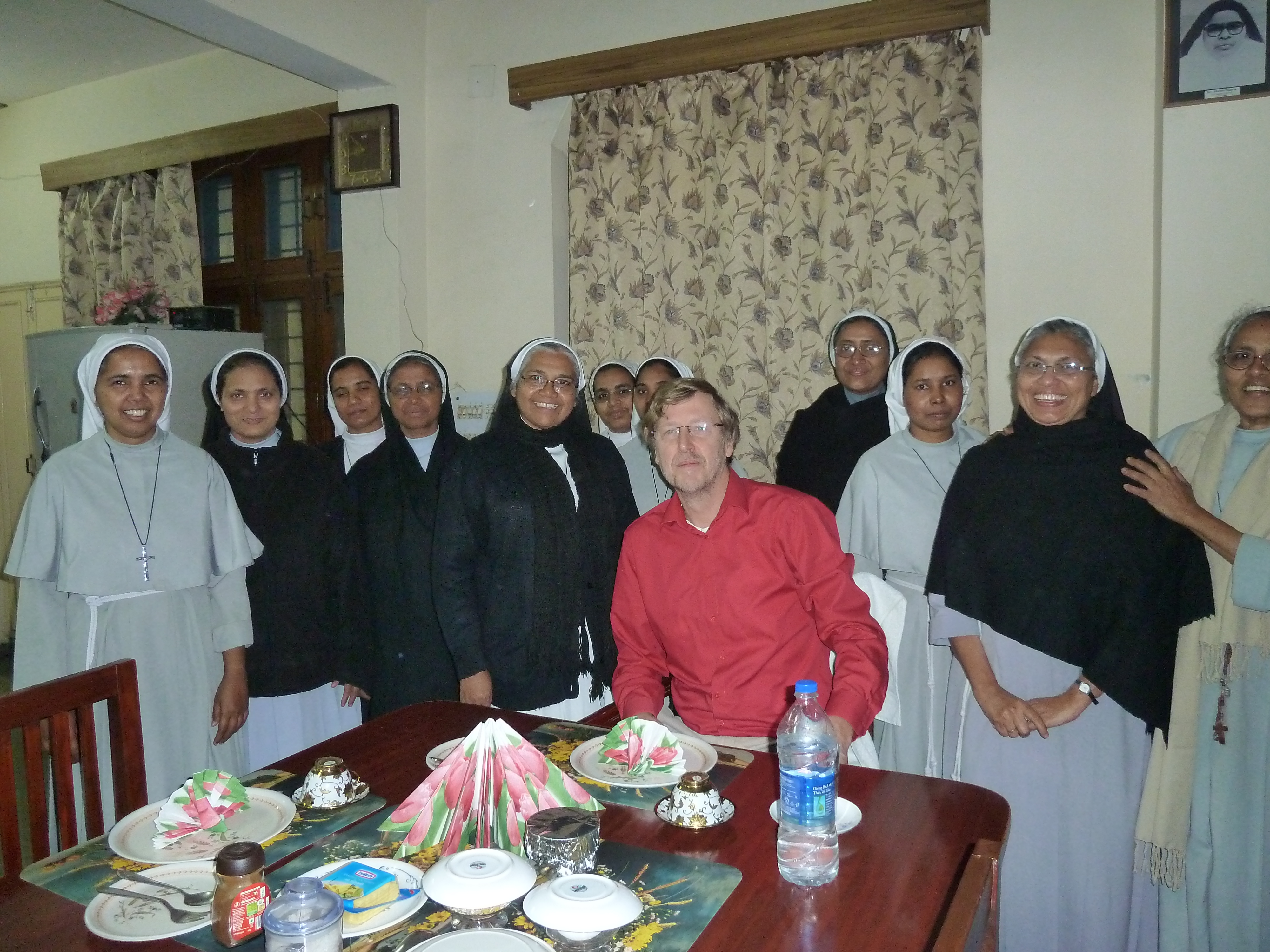 Es geht anschließend zum Airport und um 19.50 Uhr startet unsere Maschine nach Kolkatta. Wir erreichen die alte indische oder besser britische Hauptstadt Indiens pünktlich um 20.20 Uhr. Wieder eine Megastadt, 18 Millionen Einwohner hat Kolkatta. Der megamoderne Airport wirkt futuristisch und wie aus einer zukünftigen indischen Epoche. Der Bus nimmt uns auf und 45 Minuten später erreichen wir das Zentrum der Caritas in der Diözese Calcutta. Ein einfaches Zentrum erwartet uns, doch der Charme von Father Francis macht alles wett. Ein unglaublich netter, offener und humorvoller Gastgeber kümmert sich um alles persönlich und da fühlt sich ein jeder doch gut aufgehoben…. und außerdem haben sie alle Zimmer für uns ganz frisch gestrichen.