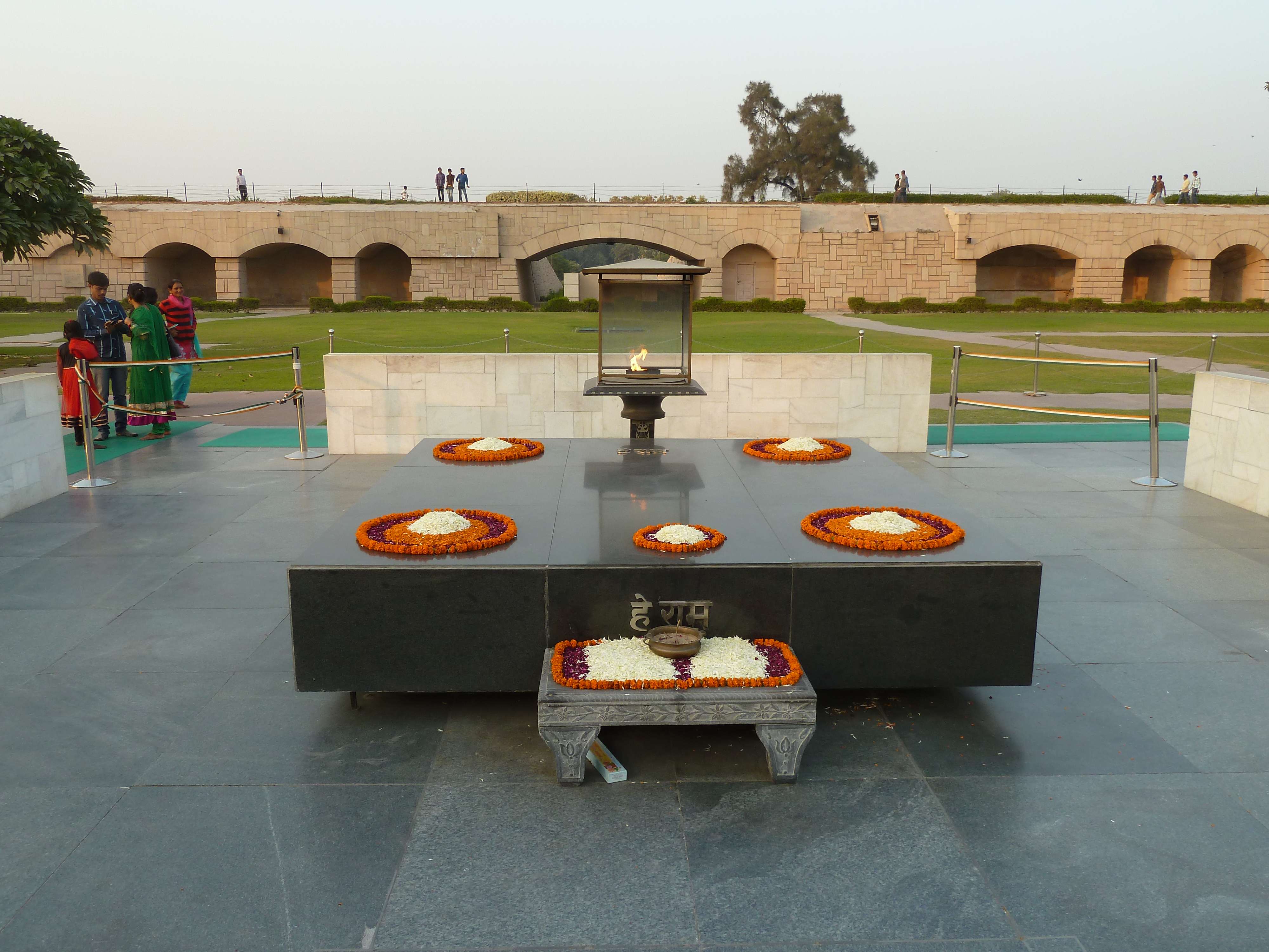 Keine Grablege sondern ein Ort des Gedenkens. Mahatma Gandhi führte Indien auf einem konsequent gewaltfreien Weg aus der britischen Kolonialherrschaft. In der Zeit seiner Unabhängigkeit wurde Gandhi am 30. Januar 1948 von einem hinduistischen Eiferer auf dem Weg zum Gebet erschossen. Die Gedenkstätte ist an dem Ort, an dem seine Leiche gemäß der hinduistischen Tradition verbrannt wurde. Kein Grab erinnert an ihn.
