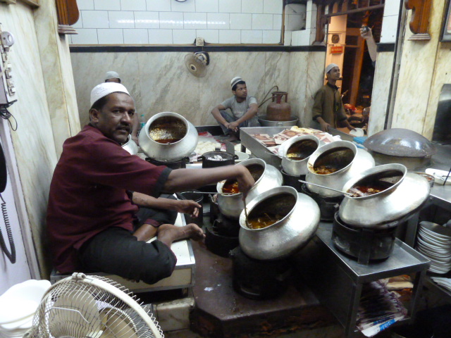 Der muslimische Basar liegt im Umfeld der Moschee. Ein irrsinniges Treiben, Massen von Menschen, Rikschas, Autos, Motorräder. Die Hupe bestimmt das Sein und das Fortkommen. Dazwischen unsere Reisegruppe, ein Fremdkörper. Bestarrt, angeschaut, angebettelt. Immer wieder, diese weißnäsigen stinkereichen Lulatsche …… Fremdkörper. Die Touristik des Handels ist eher angenehmen, die der Not eher abstoßend. Wir besuchen eine Armenküche, wie es sie nur im muslimischen Basarviertel gibt. Spezialisierte kleine Restaurants kochen für die Armen und Hungrigen. Die Menschen sitzen vor dem Restaurant auf dem Boden und warten auf Spender. Der Spender bezahlt dem Wirt eine Summe seiner Wahl und der Wirt läßt entsprechend viele der Hungrigen ins Lokal. Ein irritierendes System, doch bei näherem Nachdenken gefällt es mir sogar. Es hat Ehre, ist eine tripple Win Situation.