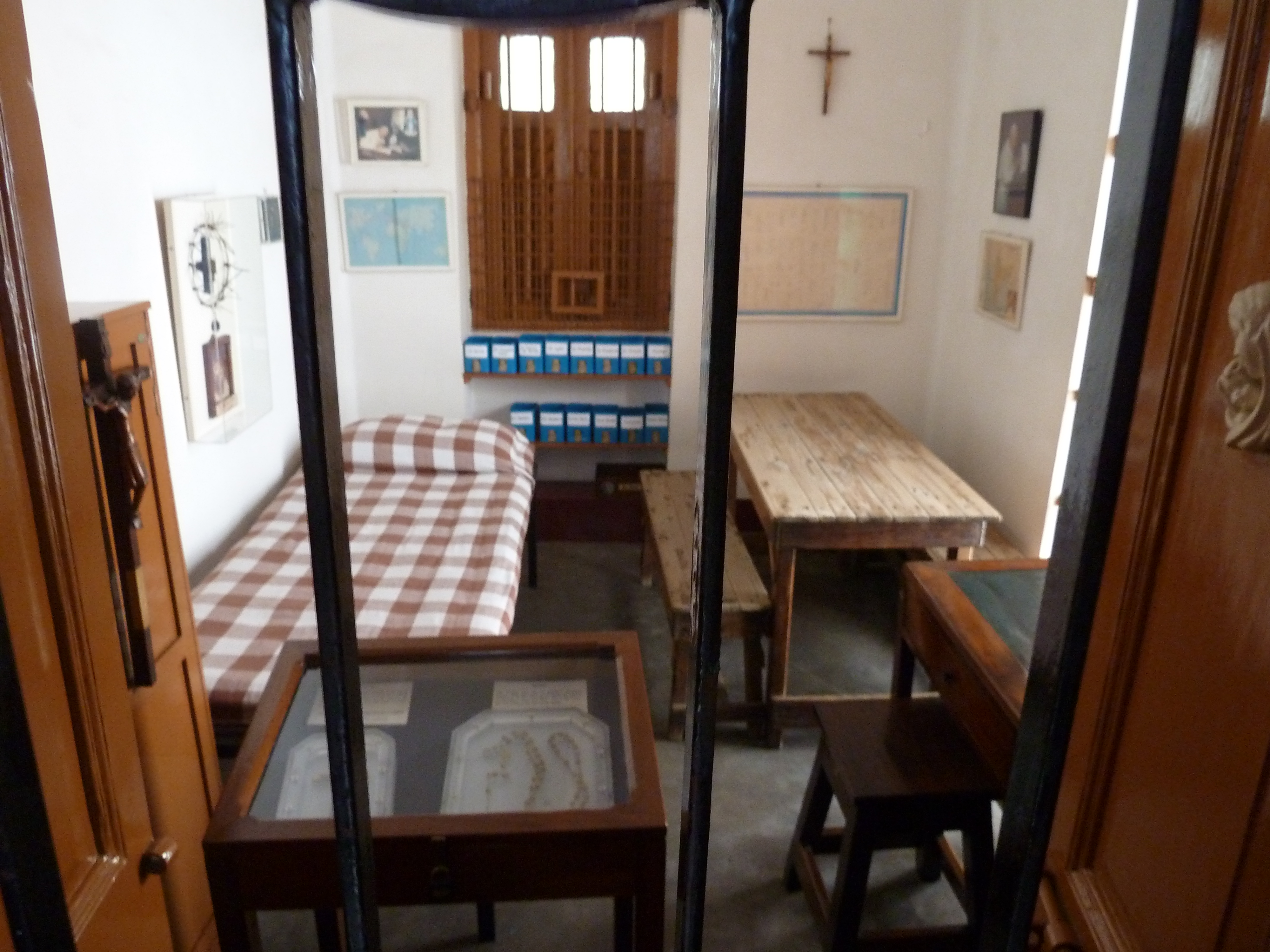Im Anschluss besichtigen wir das Zimmer, in dem Mutter Theresa die letzten Jahre ihres Lebens gelebt hat. Eine kleines, kaum 3×3 m kleines Zimmer mit einem schlichten Holzbett, einem Tisch und einem Regal. Beeindruckend einfach und schlicht.