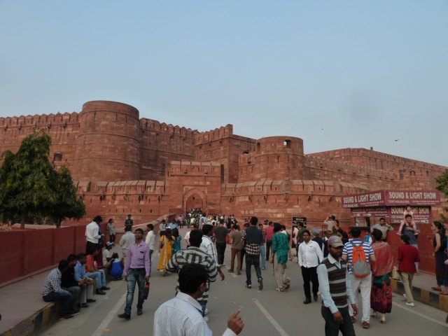 Die gewaltige rote Mauer läßt von außen kaum vermuten, was innen passiert. Eine für damalige Verhältnisse uneinnehmbare Festung bietet innen einen Regierungssitz. Audienzhalle, Verwaltungsgebäude, Moscheen, Wohngebäude, Hamam, alles ist vorhanden und in einem erstaunlichen Zustand. Die tollste Geschichte ist aber der Gefangenentrakt in dem Aurangzeb, der Sohn des Erbauers des Taj Mahals, seinen Vater Shah Jahan für lange Jahre inhaftierte – um den Vater und den Schatzmeister vor weiteren aberwitzigen Ausgaben zu „schützen“.