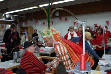 Das Kölner Dreigestirn hautnah zu sehen und zu erleben. Letzte Woche Mittwoch war es endlich soweit: Prinz Holger I., Bauer Michael und Jungfrau Alexandra sangen und tanzten mit den Mitarbeitenden. Der Chor der Fründe von der Akademie för uns kölsche Sproch e.V.sorgte mit Karnevalsklassikern für Stimmung. Für die Session fertigen die Mitarbeitenden attraktive Karnevalskostüme und Zubehör an, ganze Karnevalsvereine statten sich mittlerweile damit aus. Die Kollektion ist inzwischen auch über die Stadtgrenze hinaus bekannt.